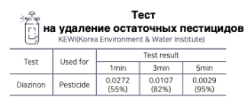 Удаление пестицидов. Эффективен при удалении остатков пестицидов на поверхности фруктов и овощей